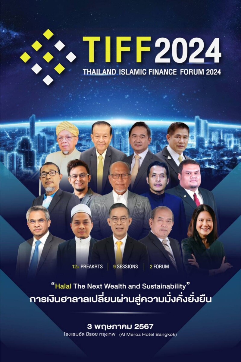 ร่วมกำหนดทิศทางและนโยบายการดำเนินงานสร้างเครือข่ายความร่วมมือด้านการเงินการลงทุน และสหกรณ์อิสลามทั้งในและต่างประเทศ เพื่อการเติบโตและการขยายตัวอย่างมั่นคง เครือข่ายสหกรณ์อิสลามแห่งประเทศไทย ชุมนุมสหกรณ์อิสลามแห่งประเทศไทยจำกัด ร่วมกับธนาคารอิสลามแห่งประเทศไทย และภาคีเครือข่ายด้านการเงินอิสลาม จึงได้จัดงานสัมมนาการเงินอิสลามประเทศไทย Thailand Islamic Finance Forum 2024 (TIFF 2024) ในวันศุกร์ ที่ 3 พฤษภาคม 2567 ณ ห้องประชุมโรงแรมอัลมีรอซ รามคำแหง กรุงเทพมหานคร ซึ่งมีผู้เข้าร่วมโครงการจำนวน 250 คน จากผู้บริหารสหกรณ์อิสลามจากทั่วประเทศ ผู้บริหารธนาคารอิสลามแห่งประเทศไทยผู้บริหารกลุ่มบริษัทประกันตะกาฟุล ผู้บริหารและนักวิชาการจากมหาวิทยาลัย ผู้บริหารองค์กรด้านการเงินอิสลามในกลุ่มประเทศอาเซี่ยน กลุ่มนักธุรกิจ ส่วนราชการ รวมทั้งผู้สนใจทั่วไป โดยมีวัตถุประสงค์ เพื่อสร้างความรู้ความเข้าใจด้านการเงิน และสหกรณ์อิสลาม การร่วมกำหนดทิศทางและนโยบายการดำเนินงานตลอดจนการสร้างเครือข่ายความร่วมมือด้านการเงิน และสหกรณ์อิสลามทั้งในและต่างประเทศ เพื่อการเติบโตและการขยายตัวอย่างมั่นคง สร้างความมั่งคั่ง อย่างยั่งยืน