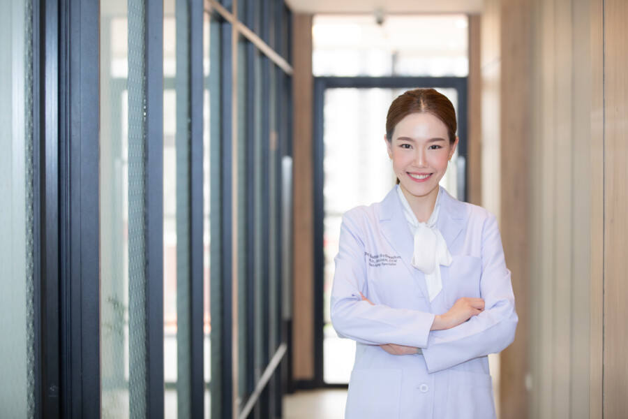 “เทรนความงามปัจจุบัน อย่างแรกที่รู้สึกเลยคือตอนนี้ความงามมันมีความเป็น unisex ค่ะ ไม่ใช่ว่า ต้องสวยเท่านั้น ความสวยงามคือสัญลักษณ์ของผู้หญิง อะไรแบบนั้น แต่คนเราทุกคนล้วนแล้วแต่อยากจะ “ดูดี” ในแบบของตัวเอง เทรนด์ความงามมันเลยกลายเป็นสิ่งสำคัญอีกอย่างหนึ่งสำหรับคนที่ชอบดูแลตัวเอง ในอดีตการดูแลตัวเองเราอาจจะคิดว่า ก็คือการออกกำลังกาย กินอาหารดี นอนหลับให้เพียงพอ ตอนนี้มันก็ยังใช่ค่ะ แต่มีการดูแลตัวเองในด้านความงามอื่น ๆ ประกอบมาด้วย เทรนด์ในตอนนี้หมอมองว่า เราทุกคนอยากดูดีขึ้น เพื่อเป็นรางวัลให้ตัวเอง อยากดูสดชื่น สดใส หน้าเด็กลง ดูไม่โทรมอย่างล่าสุดที่กำลังฮิตมาก ๆ ก็จะเป็นการดูแลในเรื่องของงานผิว การยกกระชับ ซึ่งเป็นการดูแลตัวเองที่ทำให้เราสวย หล่อ ดูดีขึ้น แต่ไม่ได้ถึงกับเปลี่ยนความเป็นตัวเรา แค่หน้าเด็กลง สดใสขึ้น มีเอนเนอร์จี้ ไปต่อสู้กับชีวิตภายนอกมากขึ้น ส่องกระจกแล้วรู้สึกหลงรักคนในกระจกอีกครั้ง อะไรแบบนั้นค่ะ”