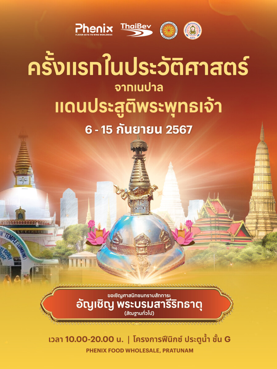 ขอเชิญศาสนิกชนร่วมกราบสักการะพระบรมสารีริกธาตุจากเนปาลสู่ประเทศไทย ครั้งแรกในประวัติศาสตร์! วันที่ 6-15 กันยายน 2567