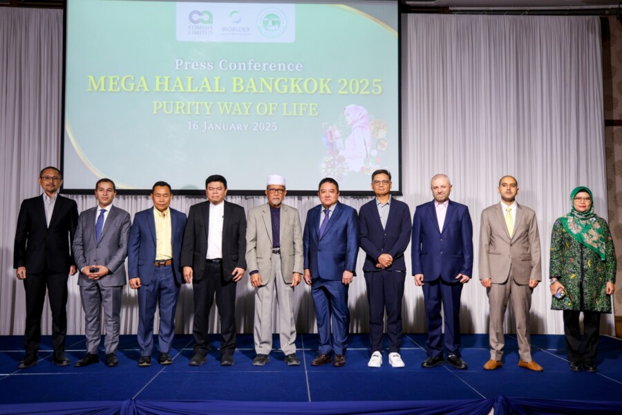 กรุงเทพ: สำนักงานคณะกรรมการการอิสลามแห่งประเทศไทย ร่วมกับ บริษัท เวิลด์เด็กซ์ จี.อี.ซี. จำกัด และ บริษัท คอมเอเชีย จำกัด (ComAsia) แถลงข่าวพิธีลงนามความร่วมมือในการจัดงาน MEGA HALAL Bangkok 2025 : งานแสดงสินค้านานาชาติที่ครอบคลุมไลฟ์สไตล์ฮาลาลครั้งใหญ่ของประเทศไทยกำหนดจัดขึ้นระหว่างวันที่ 16-18 กรกฎาคม 2568 ณ. ศูนย์นิทรรศการ และการประชุมไบเทคบางนา