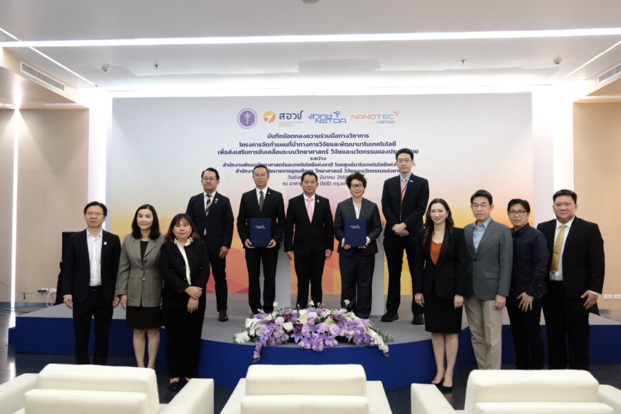 สำนักงานพัฒนาวิทยาศาสตร์และเทคโนโลยีแห่งชาติ (สวทช.) โดยศูนย์นาโนเทคโนโลยีแห่งชาติ (นาโนเทค) ภายใต้ กระทรวงการอุดมศึกษา วิทยาศาสตร์ วิจัยและนวัตกรรม (อว.) และ สำนักงานสภานโยบายการอุดมศึกษา วิทยาศาสตร์ วิจัยและนวัตกรรมแห่งชาติ (สอวช.) ลงนามความร่วมมือโครงการจัดทำ “แผนที่นำทางการวิจัยและพัฒนานาโนเทคโนโลยีของประเทศไทย พ.ศ. 2569 – 2573” ส่งเสริมการขับเคลื่อนระบบวิทยาศาสตร์ วิจัยและนวัตกรรม (ววน.) ของประเทศ และสร้างเครือข่ายด้านนาโนเทคโนโลยี นำร่อง 4 ประเด็นมุ่งเน้น คือ การแพทย์และสุขภาพมูลค่าสูง, พลังงานสีเขียวและการเปลี่ยนแปลงสภาพภูมิอากาศ, เกษตรอาหารเพื่อความยั่งยืน และความปลอดภัยนาโนเทคโนโลยี (Nanosafety) ตั้งเป้ายกระดับผลงานวิจัยสู่การใช้งานจริงในทุกภาคส่วน