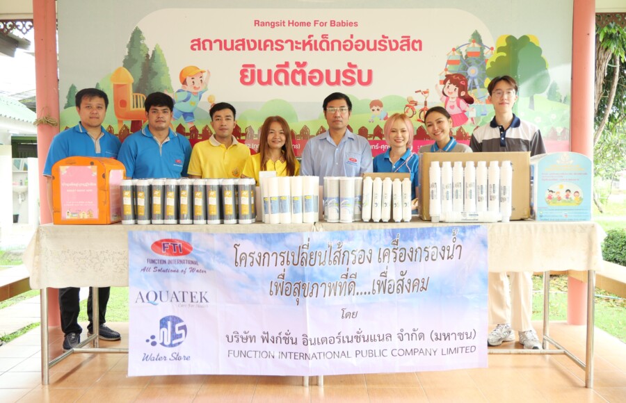 นายวรรณรัตน์ รัตนปัญญา ผู้จัดการฝ่ายการตลาด บริษัท ฟังก์ชั่น อินเตอร์เนชั่นแนล จำกัด (มหาชน) หรือ FTI พร้อมด้วยทีมงาน ร่วมเดินหน้าสานต่อ “โครงการเปลี่ยนไส้กรองเครื่องกรองน้ำ เพื่อสุขภาพที่ดี เพื่อสังคม” โดยมีเป้าหมายเพื่อยกระดับคุณภาพชีวิตของเด็กและเจ้าหน้าที่ในสถานสงเคราะห์ผ่านการดูแลระบบน้ำดื่มอย่างมีประสิทธิภาพ โดยบริษัท ได้ดำเนินการเปลี่ยนไส้กรองและตรวจเช็คเครื่องกรองน้ำอย่างละเอียด เพื่อให้มั่นใจว่าน้ำดื่มที่เด็ก ๆ และบุคลากรใช้บริโภคนั้น สะอาด ปลอดภัย และปราศจากสิ่งปนเปื้อนที่เป็นอันตราย พร้อมทั้งยืนยันความตั้งใจของบริษัท ในการมีส่วนร่วมสร้างสังคมที่มีคุณภาพ ด้วยความห่วงใยในสุขภาพของทุกชีวิต ทั้งนี้ โครงการดังกล่าวถือเป็นอีกหนึ่งพันธกิจในการตอบแทนสังคมของบริษัทที่มุ่งมั่นส่งเสริมสุขภาวะ และยกระดับคุณภาพชีวิตของประชาชนในชุมชนอย่างยั่งยืน ณ สถานสงเคราะห์เด็กอ่อนรังสิต จ.ปทุมธานี